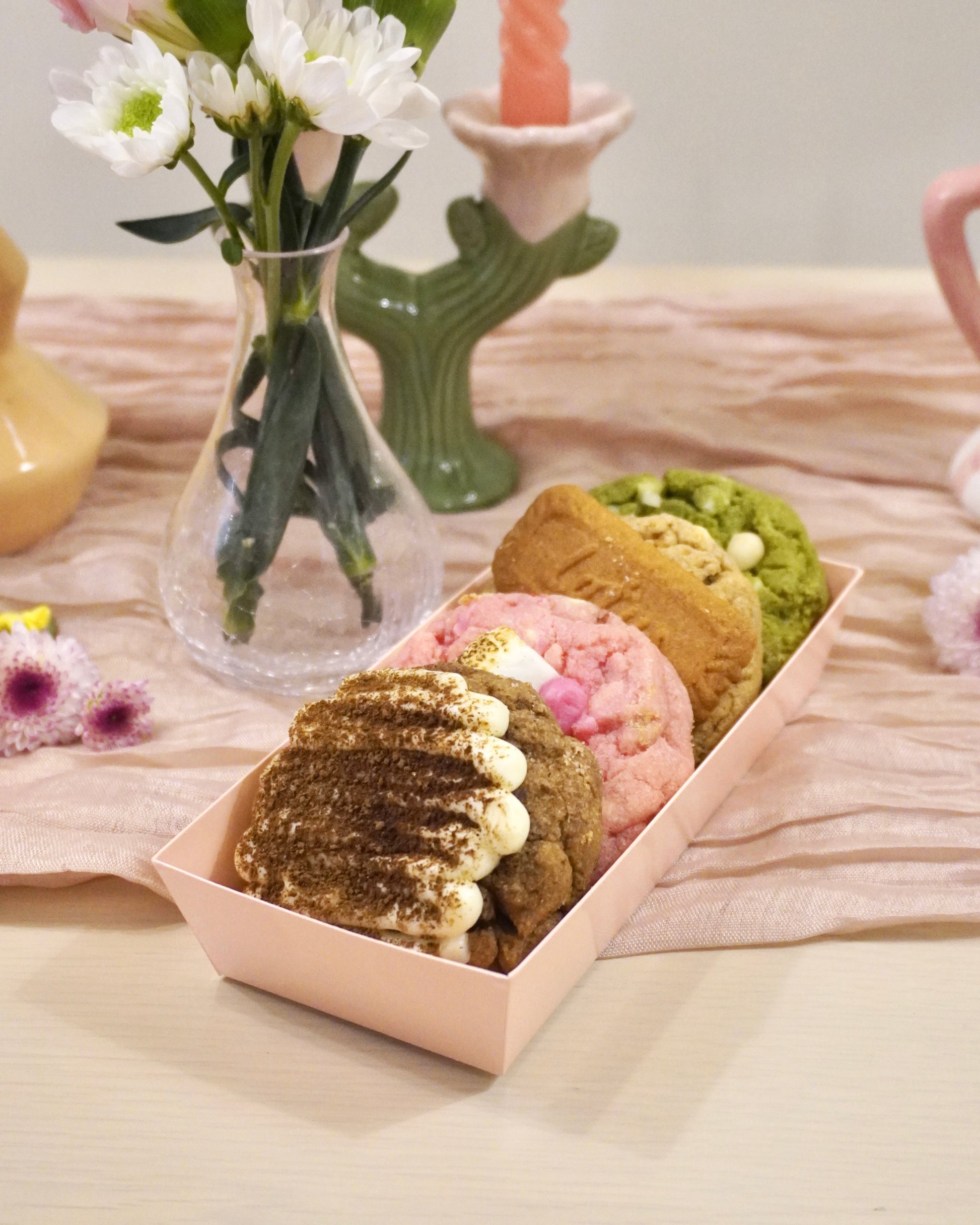Comes with assorted flavors of: Tiramisu, Strawberry, Biscoff, and Matcha